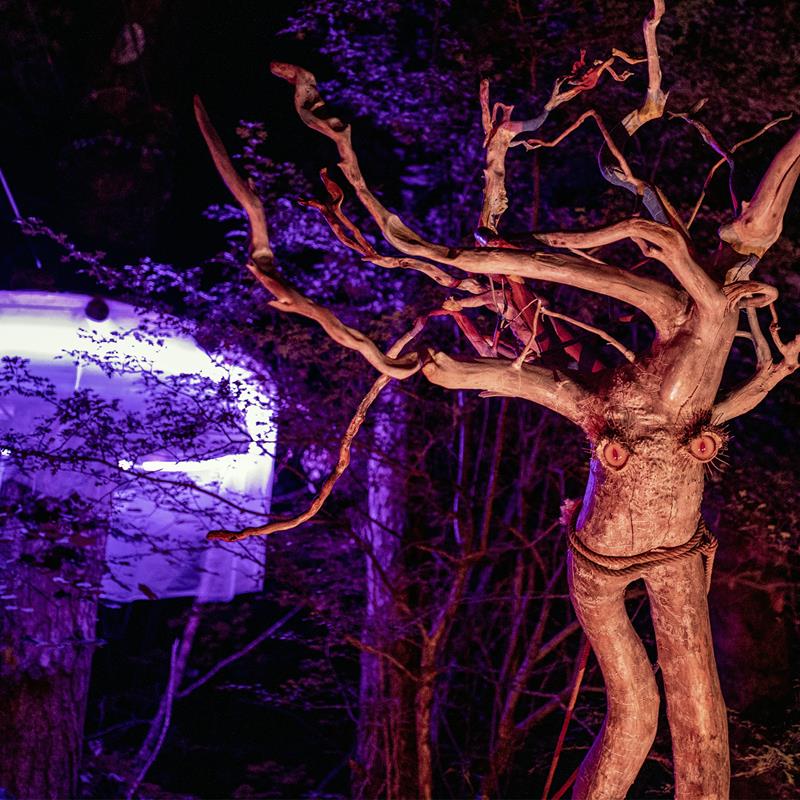Brixta se presentaba a través de una doble capa o textura, la del algodón sobre sus ramificaciones y la de la imagen que se formaba a partir del vídeo mapping. La pieza representaba diferentes códigos de comprensión y comunicación con las entidades del bosque, un homenaje a las mujeres curanderas a las que hacía referencia el evento.
