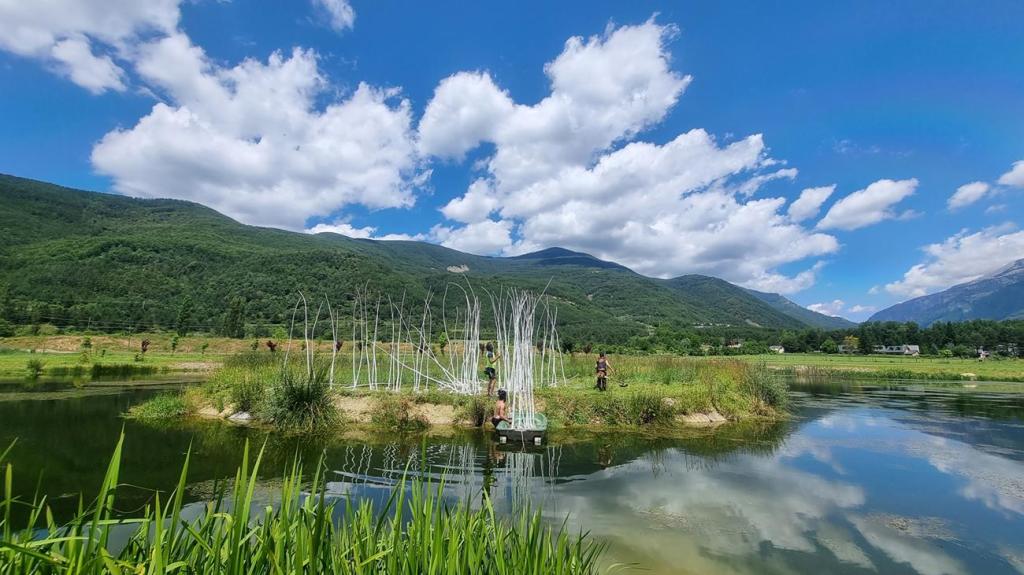 Intervención escultórica.Se colocaron en la isla del lago una serie de 105 varas de hasta 330cm de altura con una imprimación luminiscente, que tiene la cualidad de cargarse durante el día con la luz del sol y brillar por la noche. El efecto del brillo se acentuó colocando un foco de luz ultravioleta para que incidiera en las varas desde en la otra orilla y así ganar protagonismo su reflejo en el agua.