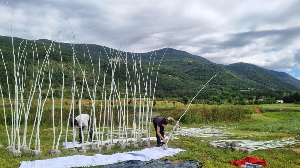 Intervenciones escultóricas diseñadas para el itinerario de las veladas de arte contemporáneo en el Ecoparque el Juncaral, Villanúa-Huesca. Las obras diseñadas por Nacho Arantegui fueron desarrolladas junto a un equipo técnico formado por Cristina Berlanga y Alberto Monreal.