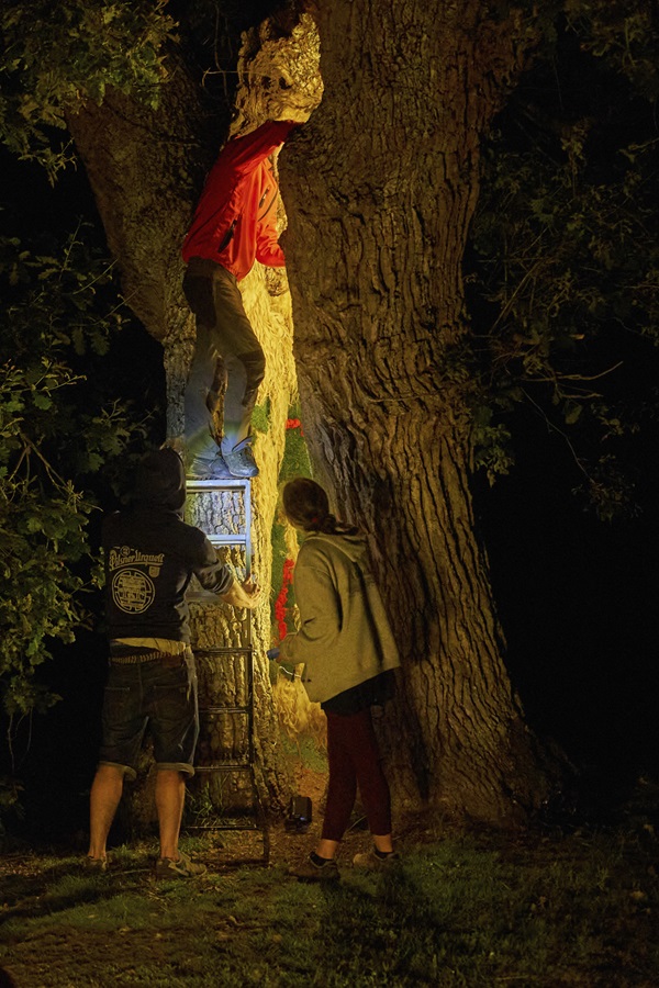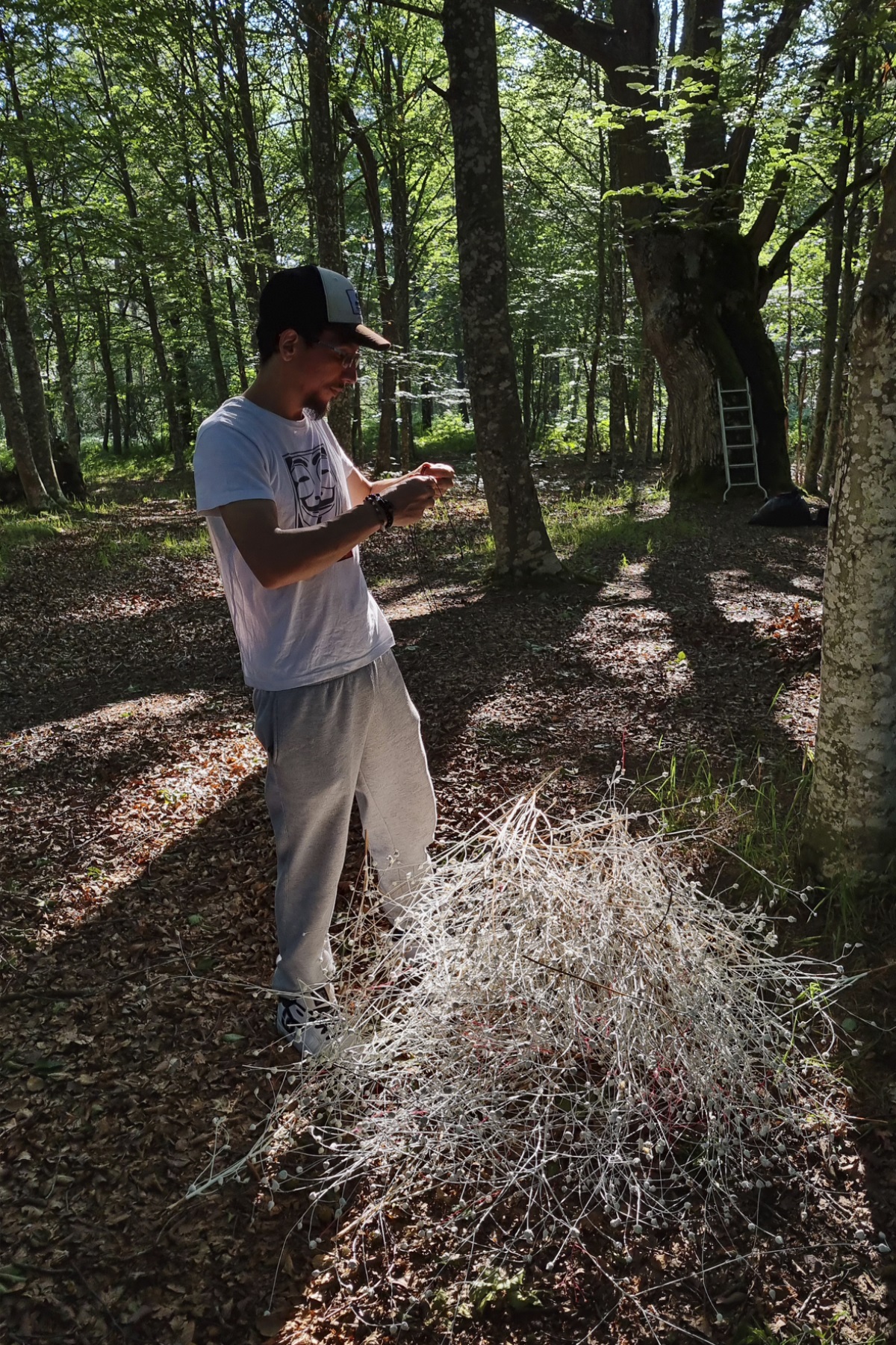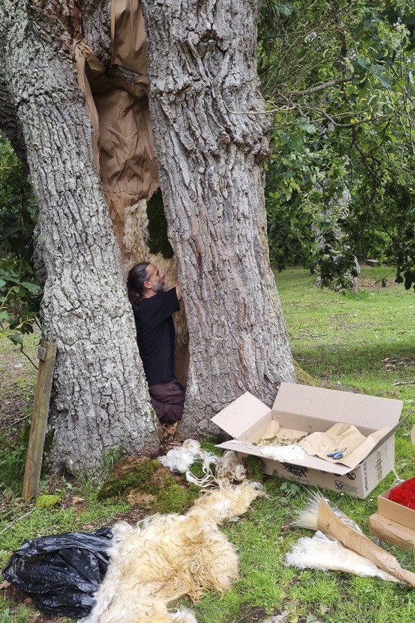 Además del diseño y dirección de las veladas, Nacho Arantegui crea las intervenciones escultóricas en el bosque, generando un diálogo entre el arte y la naturaleza.