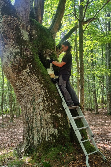 Para el cierre, dos bailarinas de la compañía Harrobi Dantza Bertikala asumieron un nuevo reto: diseñar una pieza de danza entre la copa de los árboles, con el acompañamiento de la música y voz de Silberius de Ura.