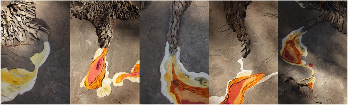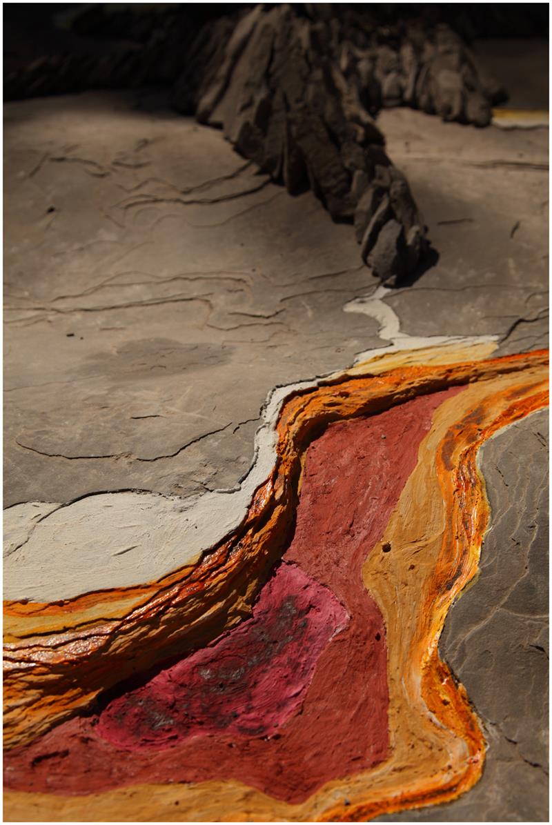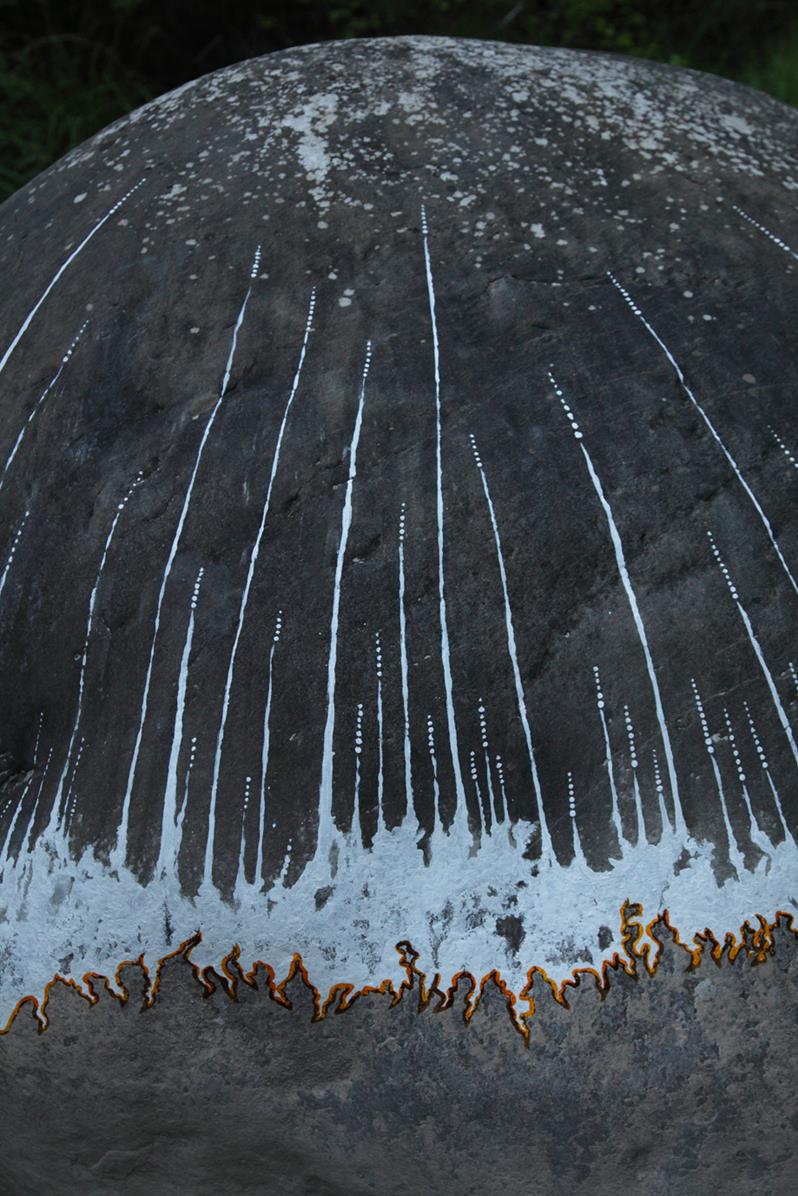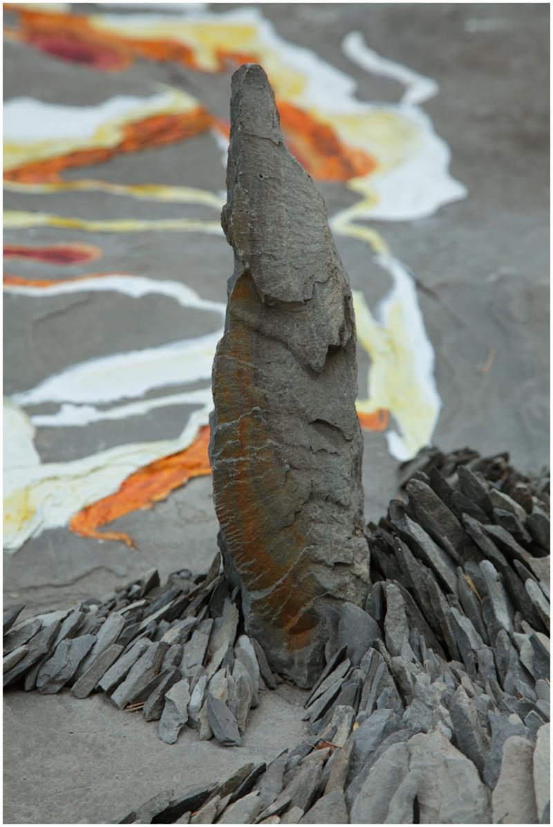 En otra superficie de roca observé hendiduras definidas en láminas de piedra pizarra, me recordaba las curvas de nivel de los mapas topográficos, siguiendo estos patrones llevé a cabo otra pieza efímera «LOS RELIEVES DE SASIRE»