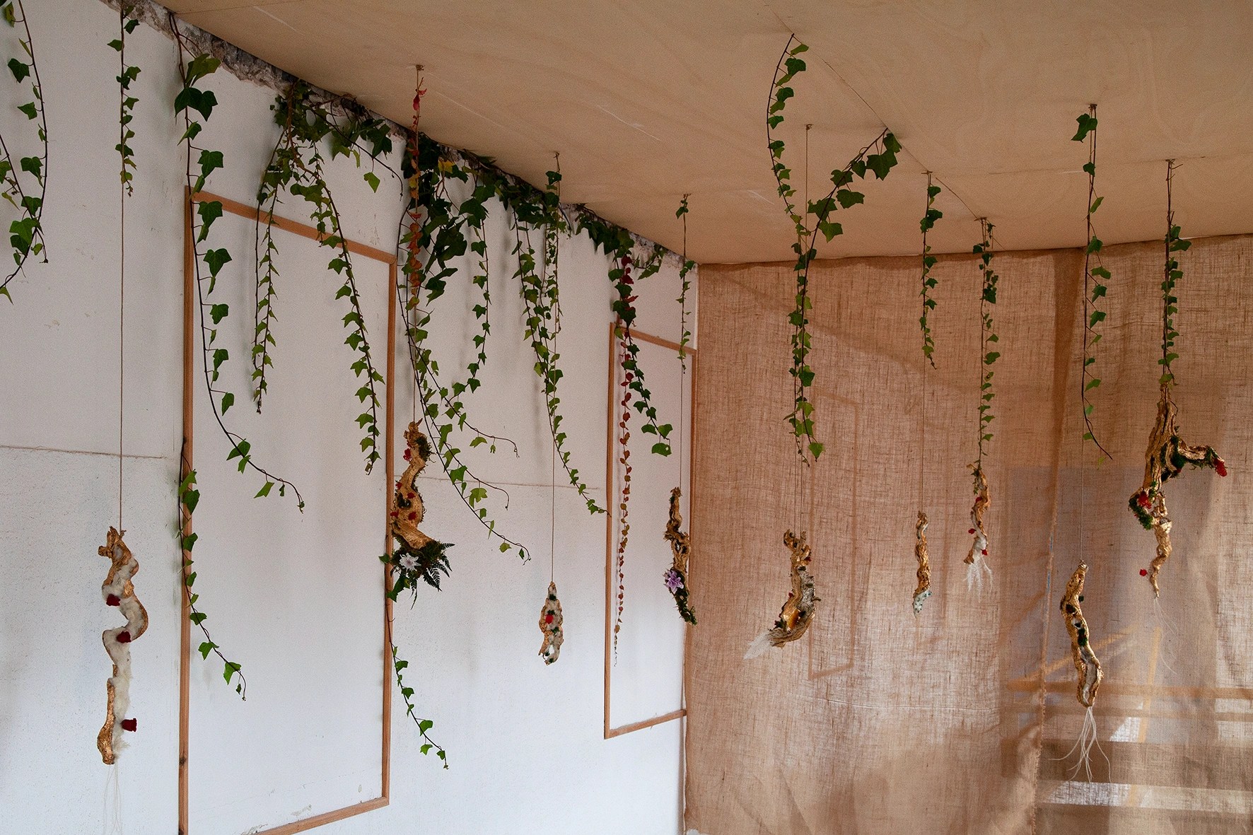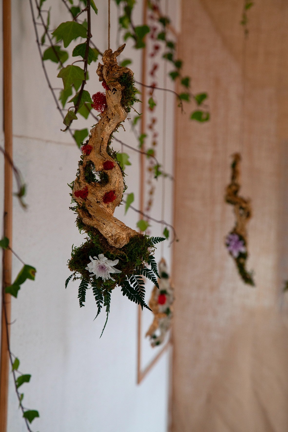 Utilizando plantas recolectadas en el territorio, especies preservadas y una serie de piezas escultóricas estratégicamente ubicadas, la intervención generó una interacción fluida con los asistentes. Cada elemento, cuidadosamente integrado en el entorno, evocaba la riqueza del mundo natural y su conexión con la creatividad y la innovación rural.