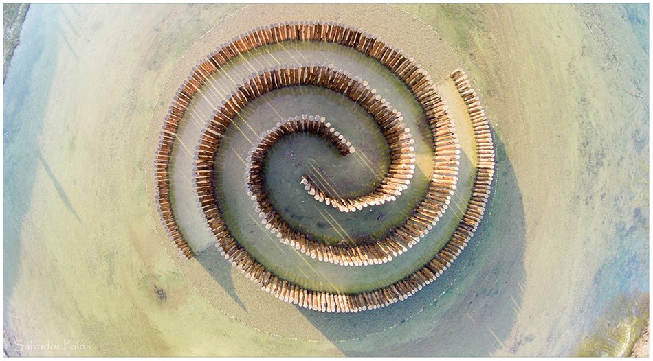 Su forma es una doble espiral que está compuesta de 404 troncos de chopo de la variedad populusxeuramericana, que se aprovecharon de una tala en las proximidades de la pieza. Ocupa una extensión de 324m² y la espiral tiene 80m lineales.