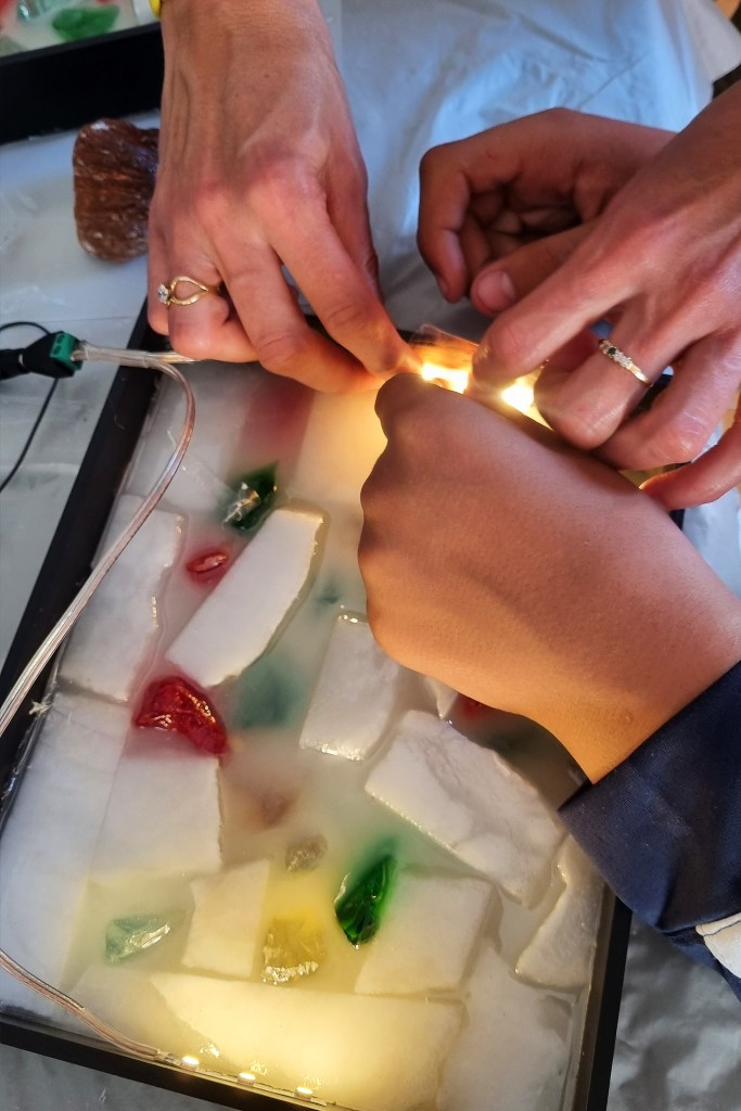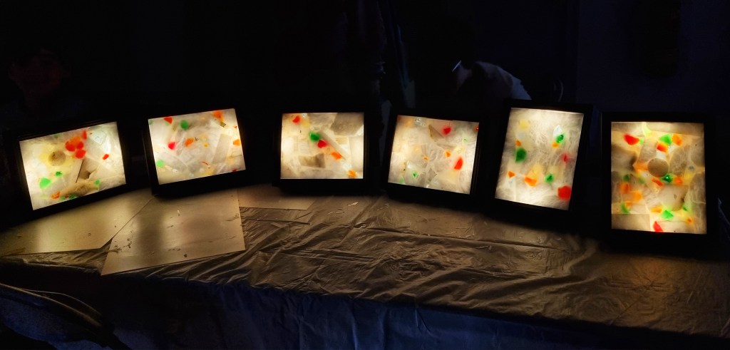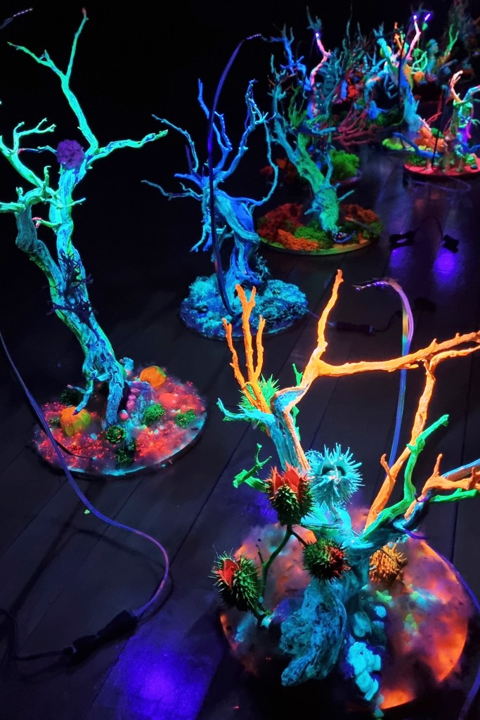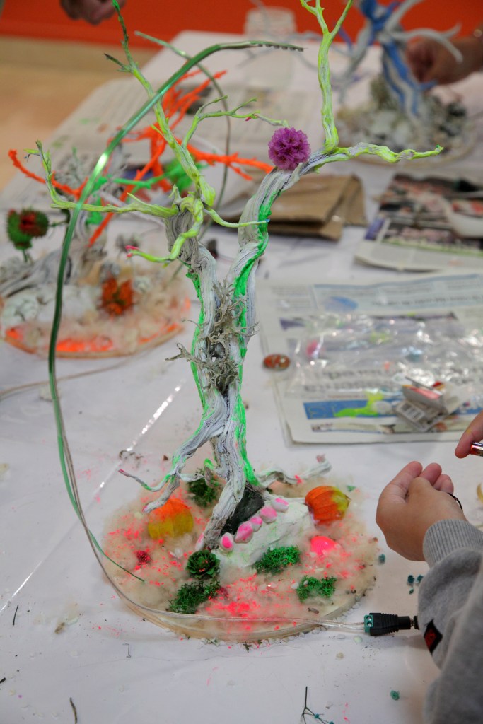 Evento nocturno en entorno natural en el que se presentan las piezas escultóricas que realizaron los participantes de los talleres. Una experiencia viva con la naturaleza y el arte.